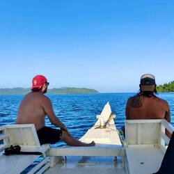 Der Job mit dem Anker wird nun andersrum ausgeführt, wir schmeißen uns ins Bade-Outfit ๐ und nähern uns per Beiboot dem Riff. Kim hatte uns gestern schon einiges dazu erzählt. Es soll dort außerdem super schön sein und dass das Wasser ๐ง total klar ist. ๐คญ