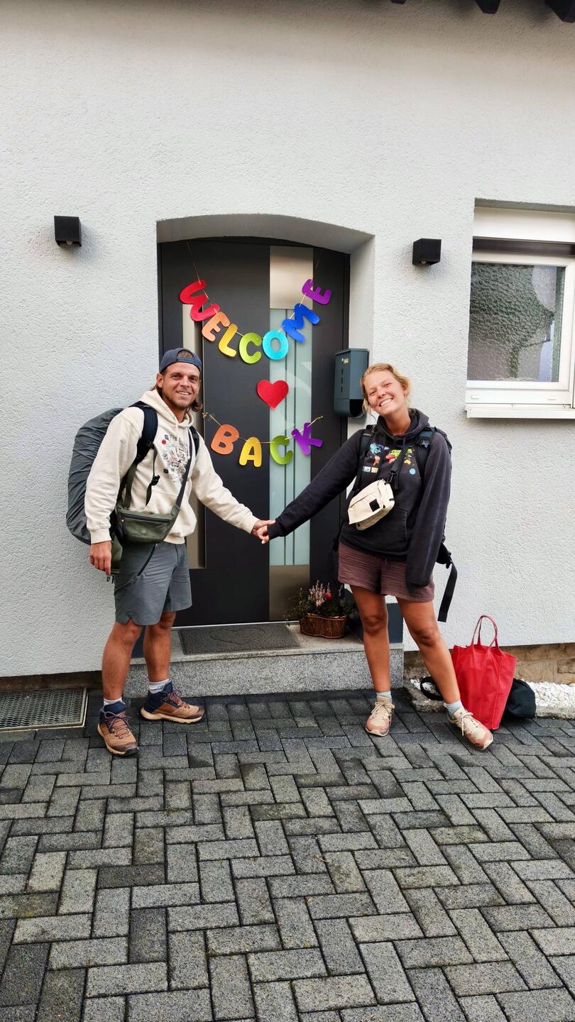 Zuhause erwartet uns dann doch noch eine „Welcome Back“-Girlande ๐ช