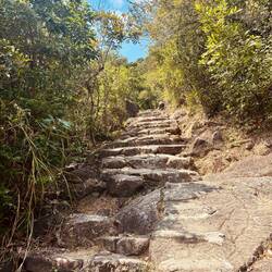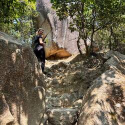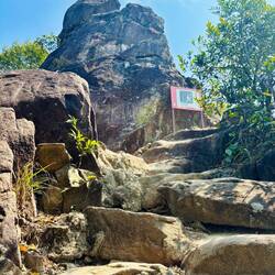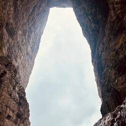 Das „Himmelstor“ ist ein riesiges natürliches Loch ๐ณ๏ธ im Berg. Bei gutem Wetter und zur richtigen Zeit scheint hier die Sonne โ๏ธ durch und es wirkt wie ein Tor zum Himmel! ๐คฉ Von hieraus hieß es „nur“ noch 999 Stufen fast senkrecht nach unten zu steigen. ๐งโ๏ธ Mittlerweile war die Wolkendecke so dicht, das wir (zum Glück für mich) die nächste Stufe kaum noch erkennen konnten.