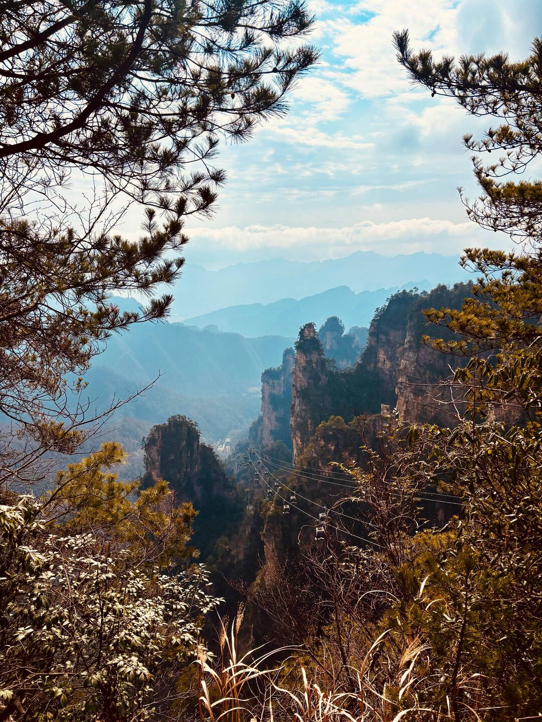 Wir haben mit der 2,1 km langen Tianzi Seilbahn ๐ก begonnen und uns dann bergab entlang den aufgezählten Stops (außer der Hängebrücke) gehangelt. ๐ฆฅ