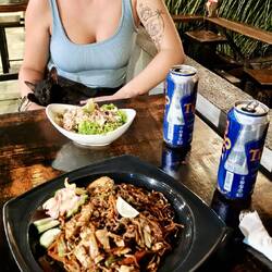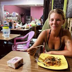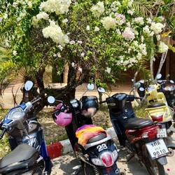 Nach dem planschen, ging es zum naheliegenden Mini-Getränkemarkt ๐ช mit angrenzendem Boxclub. ๐ฅ Nach ein paar netten Gesprächen mit der Inhaberin, haben wir bei Ihr direkt einen Roller ๐ต gemietet und einiges über das morgen anstehende „Songkran Festival“ (Neujahrfest) erfahren. ๐ฆ