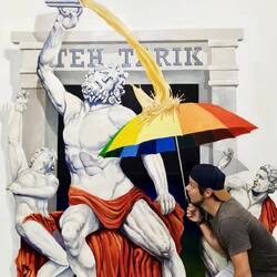 Hier wurde ein überdimensionales Kirmsezelt nur ohne Zelt โบ๏ธ aufgebaut. Das komplette Gerüst wurde mit einer Art Sprinkleranlage ๐ฟversehen, die quasi permanent auslöste. ๐