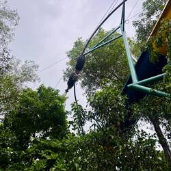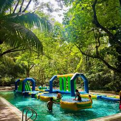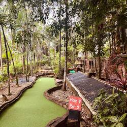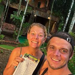 Die einzig trockenen zwei Stunden am Abend, haben wir genutzt und sind zum Minigolf ๐๏ธโณ๏ธ gefahren. Ein 18-Loch Parcour in mitten einer alten Ruine im Dschungel. ๐ Gar nicht so günstig mit 11€ p.P., aber jeden Cent wert. Im Preis inbegriffen sind Mückenspray ๐ฆ , Wasser๐ฐ und Handtücher. Lena mag den Sport (๐