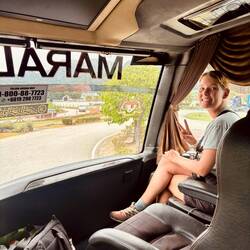 Da wir mindestens 15 Minuten mit dem Auto ๐ benötigen würden, blieb uns nichts anderes übrig als direkt am Pier ein völlig überteuertes Taxi ๐ zu nehmen. Nach dem wir dem Fahrer gesagt hatten, wann der Bus fährt, hat er seine Jogginghose ๐ฉณ gegen seinen Rennanzug ๐๏ธ๐ช getauscht und brachte uns gerade noch pünktlich zum Busbahnhof. ๐ซก