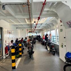 Nach erfolgloser Suche, sind die beiden erstmal wieder Richtung Süden weiter gedüst. ๐จ ๐๏ธ Wir haben zufällig gelesen, dass es eine Autofähre geben soll. Die muss ja irgendwo abfahren. Also haben wir uns auf den Weg zum Pier Nummer 2๏ธโฃ gemacht. Und tatsächlich… ein uralter verrosteter Kahn setzt mehrmals täglich über. โฌ๏ธ ๐ช๐ป