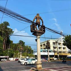 Der nächste Halt โ sollte eigentlich „Ko Ko Khao“ sein. Mit einem Longtailboot kann man einschließlich dem Roller übersetzen. โด๏ธ Aufgrund des weiterhin schlechten Wetters haben wir das aber geskippt. โ Stattdessen sind wir ca. 15 Kilometer Richtung Osten ๐งญ in das Örtchen „Talat Yai“ gefahren. Hier haben wir uns ein paar Tempel ๐, Street Art ๐ฉ๐จ und die „Boon Soong Iron Bridge“ angeschaut.
