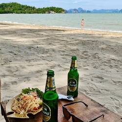 Gegen Mittag haben wir uns wider auf den Roller ๐ต geschwungen und noch den nördlichen Teil der Insel erkundet. ๐ Wir haben uns nochmal ausgiebig die naheliegenden Reisfelder angeschaut ๐พ, den Wochenmarkt besucht und einige Strände ๐๏ธ „getestet“. Leider sind diese hier nicht sooo schön wie auf der gegenüberliegenden Insel Ko Yao Yoi, aber zum „abkühlen“ dennoch ausreichend. ๐ฅต๐ฅต