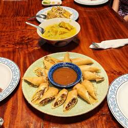 Wir haben u.a. eine gelbe Currypaste ๐, Kokosnussmilch- und Creme ๐ฅฅ sowie Frühlingsrollen selbst hergestellt. ๐ซ