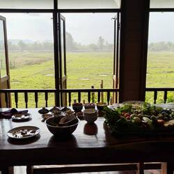 Nach 10 Minuten Fahrt waren wir auch schon da. Ein kurzer Fußmarsch๐ฆถdurch die Gärten ๐ณder Nachbarn brachte uns schlussendlich zu einem kleinen niedlichem Haus ๐ก inmitten von Reisfeldern. ๐พ