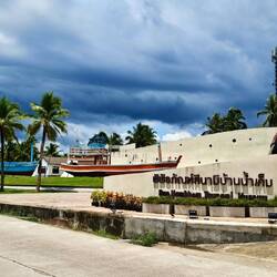 Anschließend ging es weiter zum naheliegenden „Ban Nam Khem Tsunami Memorial Park“. Hier befindet sich ein Gedenkpark für die Opfer der Katastrophe mit einer Betonmauer in Form einer Welle und einer Buddahstatue. Das Innere der Welle besteht aus einigen Bildern ๐ผ๏ธ der Opfer und Gedenksprüchen ๐ฌ der Hinterbliebenen.