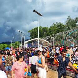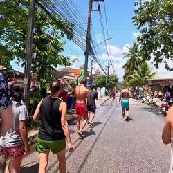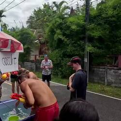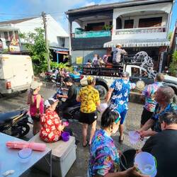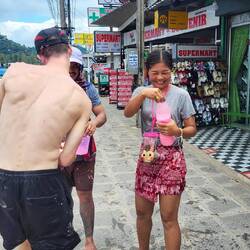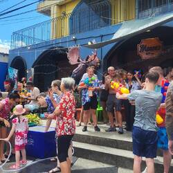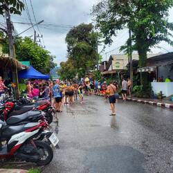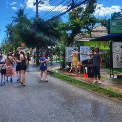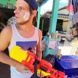 Das „Songkran Festival“ ist das thailändische Neujahrsfest und findest jährlich vom 13.04. - 15.04. statt. Am ersten Tag, wird den ganzen Tag lang eine riesige Wasserschlacht zelebriert. Es werden Tonnen und Fässer mit Wasser (& teilweise + Eis ๐ง) gefüllt und jeder bewaffnet sich mit einer Wasserpistole ๐ซ einem Gartenschlauch ๐ฟoder einem Eimer ๐ชฃ. Ob auf dem Roller ๐ต , auf der Ladefläche des Jeeps, im Schulbus oder in der Bar am Tresen stehend, es wird einfach JEDER nass gemacht. ๐