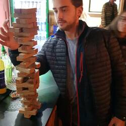 Wir Trinken, spielen Jenga und nebenbei gewinne ich ein shot Piscas beim Kronkorkenwerfen😜👍