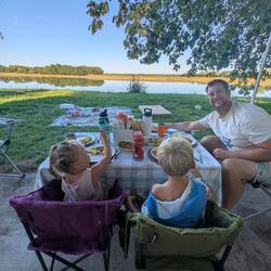 Lots of fisherman fishing, no noise, a pool to splash around in and a cycle route to get to the nearest towns.