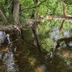 A beautiful park with fun nature activities with a river to swim in.