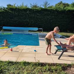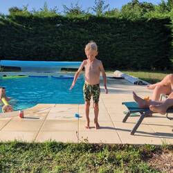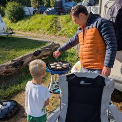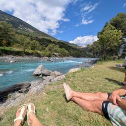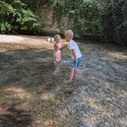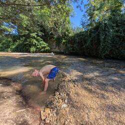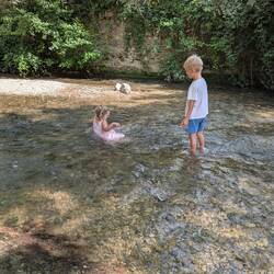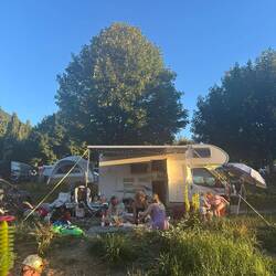 Beautiful campsite, small rivers to swim in and a heated pool! To top it off, an on-site bakery, we fetch out croissants and pan chocolate at 8am for breakfast! And a pizza van is coming tomorrow!Read more