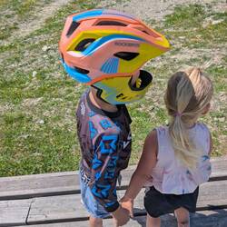 AJ and Jax first downhill biking experience, they were champs, Jax had a little fall, I think a full face helmet is in her future.