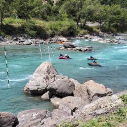 Right next to a kayaking course on the river.