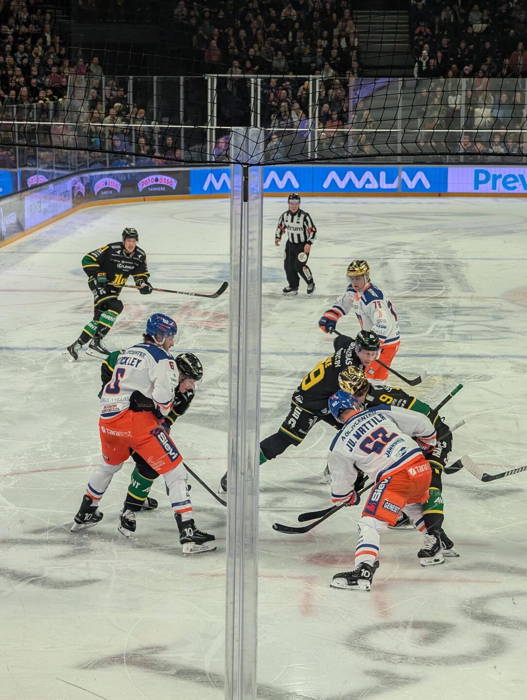 Nach einer arbeitsreichen Woche sind wir zum Spiel Tampere gegen Tampere gegangen. Tampere ist die einzige Stadt mit zwei Teams in der ersten Liga, davon ist Tappara Tabellenführer.