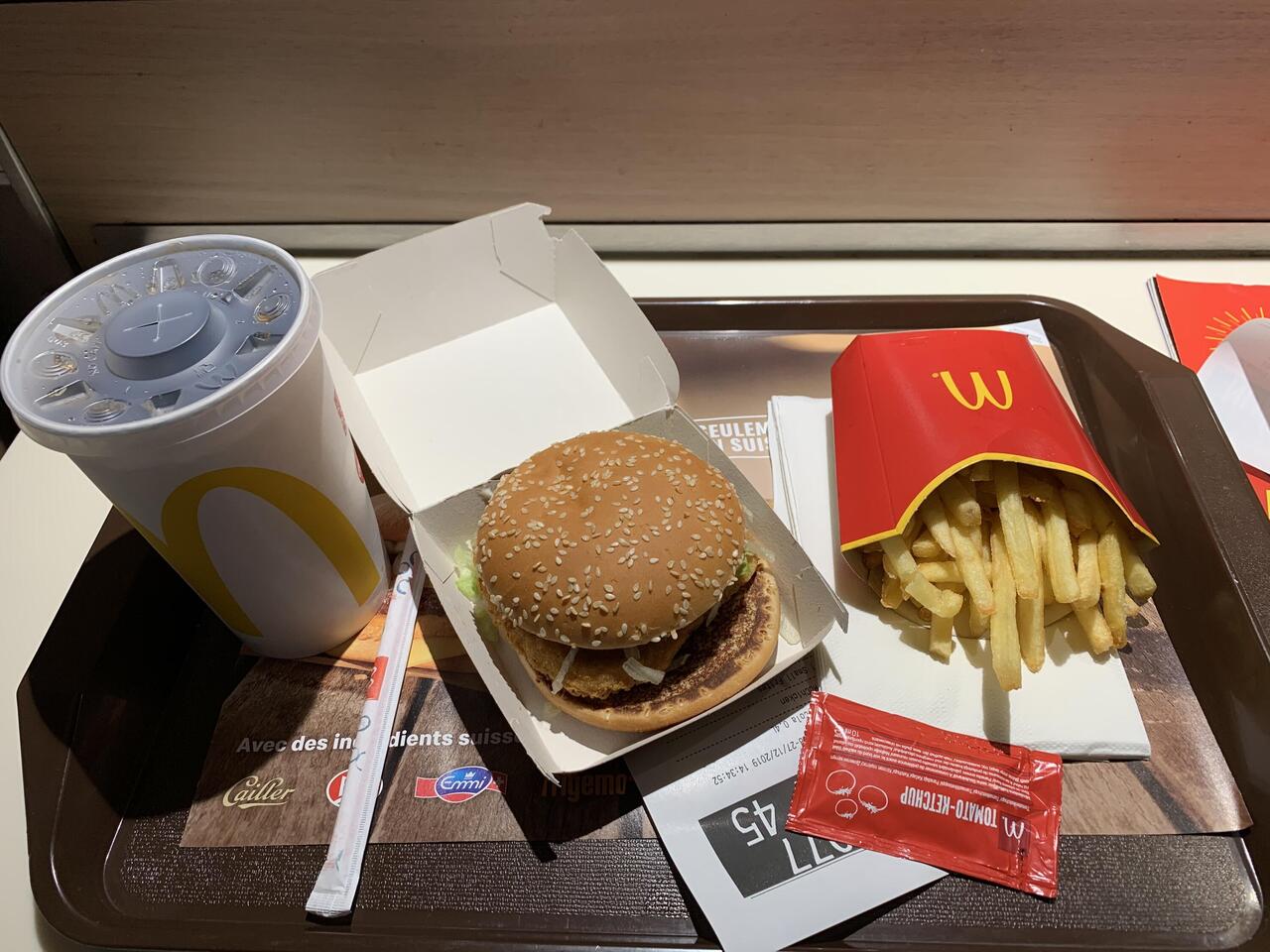 Europe 2019-2020TravelerMcDonalds December 27, 2019 in Switzerland ⋅ 🌧 45 °F I needed to eat something so that later I will be hungry and able to eat a big dinner. So a McChicken, fries, coke and .20 extra for ketchup. We will see 1 like Show trip