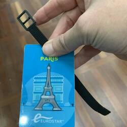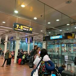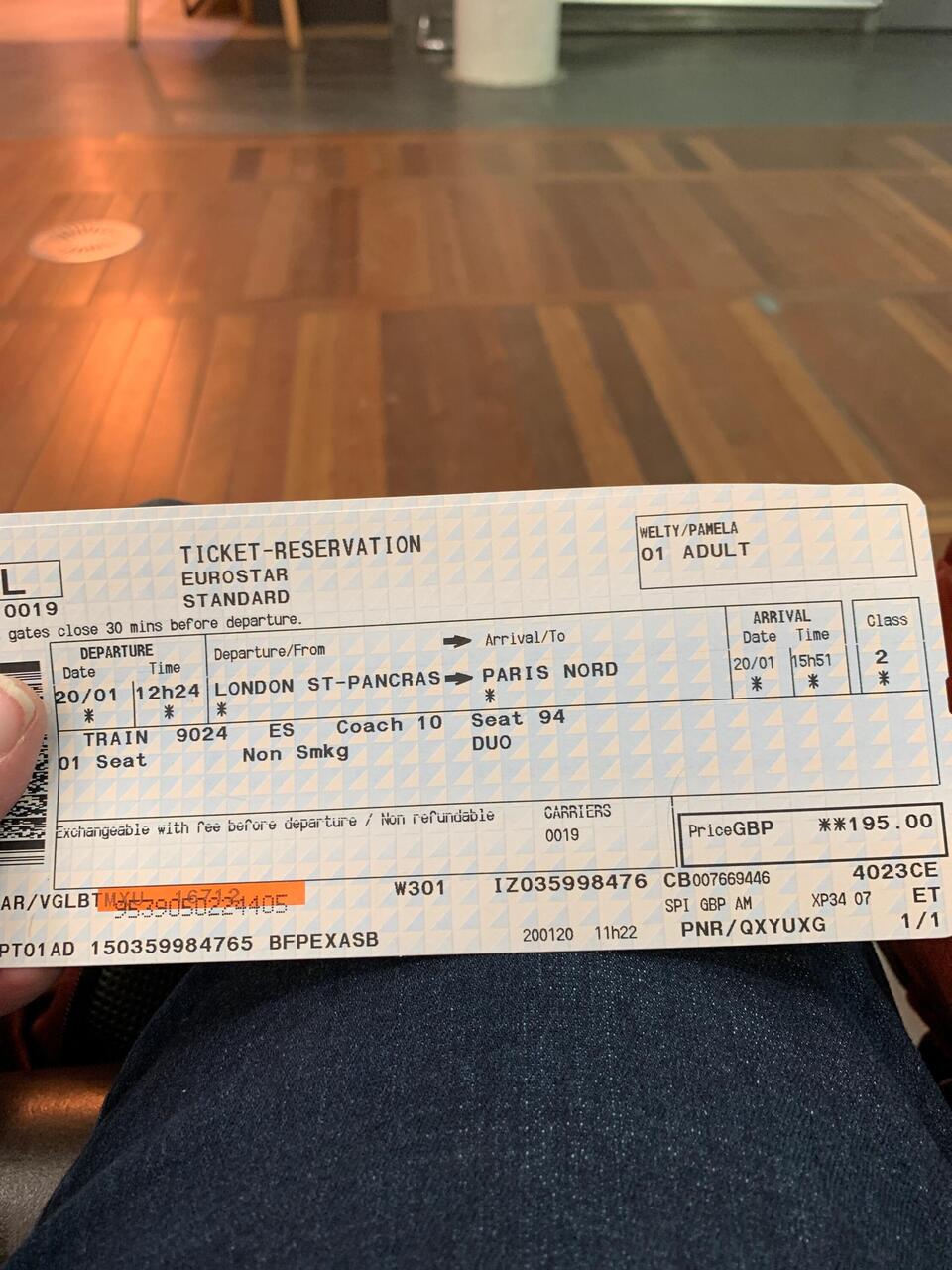 Since this is a train adventure the Eurostar seems like the ideal transport. I got a free luggage tag and so far a pole to lean against as I wait for the train. It’s a very busy international station.