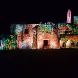 En fin de journée : spectacle son et lumières projeté sur le couvent de SanRead more