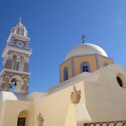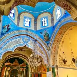 We weren’t planning on checking out the tourist sites as we were here to relax and enjoy the area, eat great food, admire the amazing scenery and soak up the gorgeous sunsets. We did check out one church but that was only because we were passing and we hadn’t seen inside a Greek church yet. We stopped at the Catholic Cathedral of Saint John the Baptist, built in 1823, but completely restored and rebuilt in 1970 after the earthquake of 1956. The churches here are so different to those we have seen in Italy. The exteriors are very simple in style with little to no decoration, not statues or gargoyles, just very simplistic shapes with contrasting colours. And while the exteriors are painted in softer tones, the interiors are very colourful and quite elaborate in their decorations with their painted walls, ceilings and arches. It was cool to check inside.