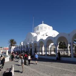 Other than visiting the church, we were quite happy just to wander the streets and admire the views. I love the contrasts of the crisp white buildings and the blue Greek flags against the background of browns and reds of the cliffs and the blue of the sky and the sea. I didn’t realise when booking that the island shuts down on 31st October and we are at the very end of the tourist season. The huge plus with visiting now is there is hardly anyone about so we really get to enjoy the area. We had heard from friends how crowded Santorini is and we were not looking forward to the crowds. This is heaven.