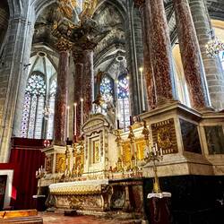 Narbonne’s Cathedral is visible from every part of the old town area as it soars above the buildings. It is the highest Gothic choir in France, reaching over forty metres high. Cathedrale Saint Just et Saint Pasteur de Narbonne (it’s full title) has a long history with the current building being built on the same site as the Constantinian Basilica was built in 313. It has been a religious site since then. The building of the current structure commenced in 1272, however the building was never finished due to many factors, including the sudden changed in the economic status of Narbonne, its unusual size and location (to complete it would mean demolishing the city wall) and the financial constraints. Even with the “extension” not completed it is still a huge church.