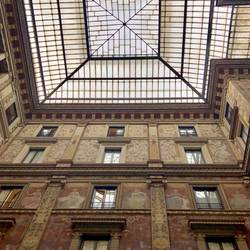 The glass and iron ceiling lets sunlight spill into the courtyard, illuminating the details in the frescoes. It was something a bit different to see in Rome.Läs mer