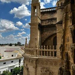 Before we even started exploring the Cathedral and its many rooms and chapel we did the tower climb first. The Giralda is the bell tower of the Cathedral of Seville and is 105 metres high. It is the former minaret of the mosque that stood on the site under Muslim rule, and was built in 1184. It was converted into a bell tower for the cathedral and the statue on its top, called "El Giraldillo", was installed in 1568 to represent the triumph of the Christian faith.