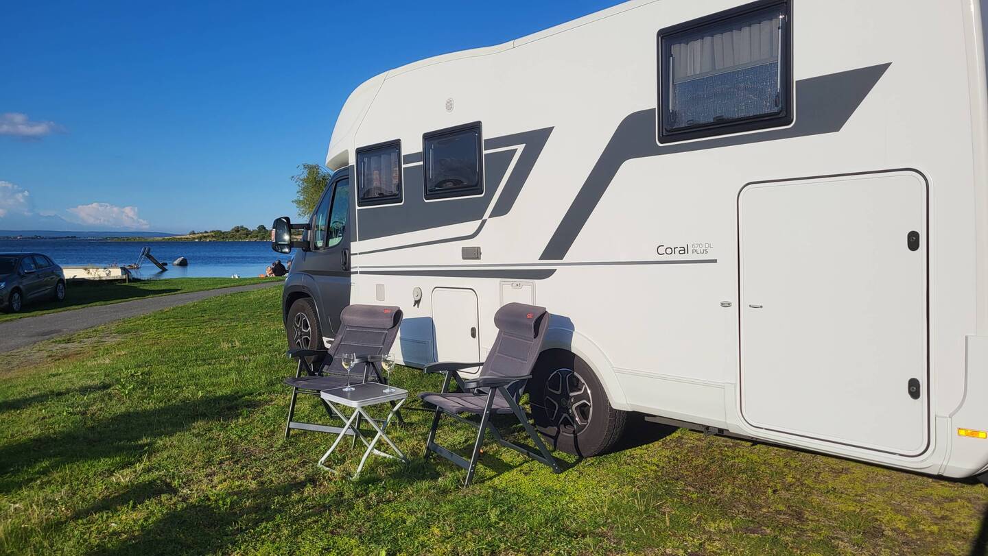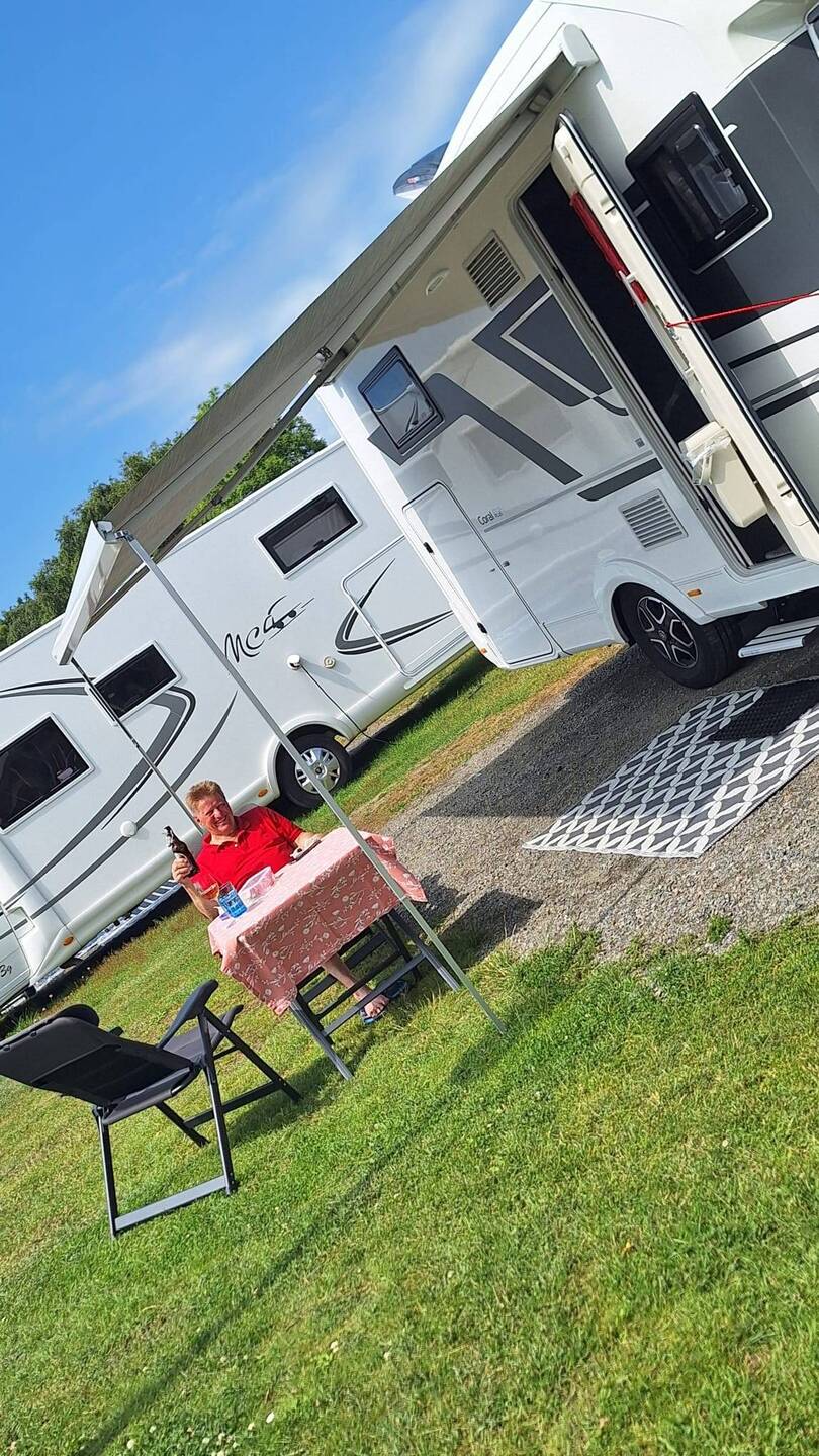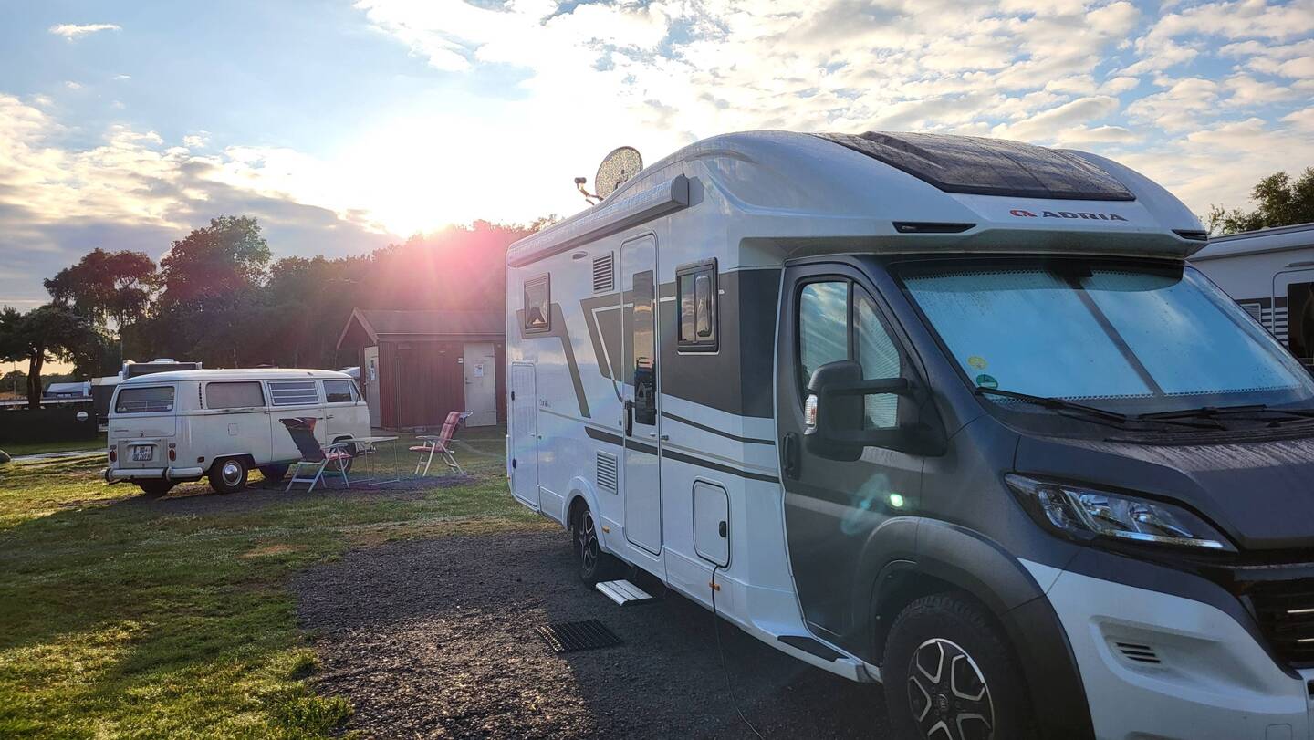Wir waren heute viel unterwegs. Es ist spät geworden, ein Stellplatz war voll (18:00) sind nun hier auf dem Campingplatz. Alles gut!👍🌞🇸🇪🍷