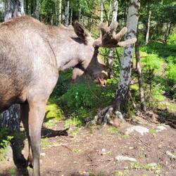 Klare Empfehlung, auch mit eigenem Fahrzeug zu fahren. Am besten hinter einem Trecker, der Fahrer lockt die Tiere mit Birkenzweigen an.