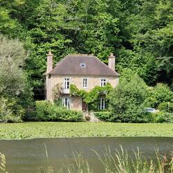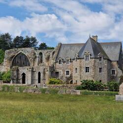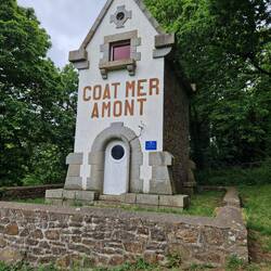 Taking a leaf out of the Kiwi ladies' book, and staying in the hotel last night (which made it much easier), I decided to cut today's 26.5km 'walk' down to 11km. I ordered a taxi for this morning which took me to Morieux, a small village not far from the GR34 route. The taxi driver spoke excellent English, so I gave up trying to communicate in French and we talked about her visits to the 🇬🇧 and my walks... She dropped me next to a lovely church and it was easy to follow the road to the Pont Rolland, a junction on the GR34. I'd expected the bridge to be something spectacular, but no, although there was a rather fabulous building on the banks of the river the bridge had crossed.