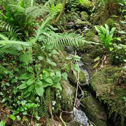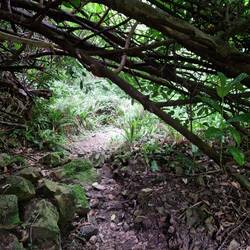 After paying (no credit cards accepted 🙄) I was half tempted to buy myself a croissant to keep me company. But I demured and found the path along the harbour. It all started so well! Road and flat, open woodland beckoned and I was able to identify a new bird - a nuthatch! The trail then led me across an estuary (with associated pongs) and it all started to go downhill from there 😂. The path was uppy downy, wet, narrow, full of tree roots and stones, it was on an angle, and yes, it was just like a tropical rainforest 🙄😂😂. It was precarious in places and I'd started to wonder at these ladies' idea of 'flat' and 'lovely'😂.