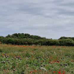 In Plévenon I was amazed to find... a butchers, a bakers, (no candlestick makers, although there was a potter, who I'm sure would've turned a few if you'd asked!) and a Tabac/restaurant where I enjoyed an Orangina and a Bounty. It felt a little like civilisation ☺️. Then I was off again to meet the GR34 at Grèves den Bas. I was now in sand dune territory and there were quite a few of them. I don't really like walking on sand - I'm slow enough as it is, but there was no choice! The views were amazing, though, and one dune led down to a beach bar😃. There, I ate half of my baguette for lunch and washed it down with a ginger beer. I also enjoyed an ice cream (I asked for it in a tub, rather than a cornet, until I thought she was serving it to me in a mug!🤢😂. I quickly changed my mind, but it seems the mug was for the water to wash the scoop in 🙄 - but that was bad enough 😂).