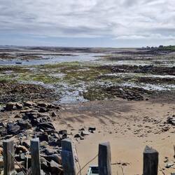 So, on to Le Québo it was. I made my way down to the coast and the Sillon de Talbert, a natural reserve and a 3km long sandbar. I was lucky enough to find the loos open, because nothing else was, and sat at a bench for a lunch of bread, babybel and rice pudding, plus a beer I'd packed away yesterday. It was just what I needed!