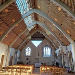 We lunched at the church in Ropley which, according to the guide, was a shell due to a devastating fire in 2014. However, it had been rebuilt and reopened in 2022 and is an amazing mix of ancient and modern architecture. It's just gorgeous! We sat outside in the sun to eat rather than inside, but it was a very quick lunch break because of the cold 😂, our hands were frozen! A quick visit to the very modern loos saw us on our way in no time at all.