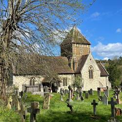 We'd missed the church in Farnham where we could get our passports stamped so wandered into the local council offices thinking they might have one (as well as an all important loo stop before we began walking). A very nice lady (who'd never heard of the Pilgrim's Way and was astounded that we were walking to Canterbury, but not in one go!) managed to locate a very nice man who told us, no, they didn't have a stamp, but they could frank our passports. So we ended up with probably the nicest stamp of all 😊! A quick loo visit and a drive to the railway station, and we were off on the start of our North Downs section of the way. I think it was something like 1100 before we finally began the day's bimble so lunchtime arrived pretty quickly, not at the pub we'd thought we'd stop at, but at the church lych-gate in Seale, a welcome shelter from the cold wind! Each of the churches we've stopped at has had a stamp for Pilgrim Passports so we have a lovely visual reminder of each section. By this time, we'd experienced torrential rain, drizzle and hailstones, as well as some very welcome sunshine, but the wind hardly ever left us. Often, though, we were fortunate to be walking between banks of trees that afforded us some shelter. For some of the way, we followed the path of the Hogs Back so (if you know this area) there were quite a few hills to climb, but it really was a fabulous day and we kept warm with all the effort we put in to walking!