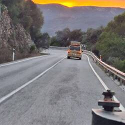Nach einem schönen Sonnenaufgang ruhiger Tag im Auto, Gut in Madrid angekommen. Ohne besondere Vorkommnisse.