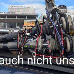 Morgendliche Bastel Stunde auf dem Campingplatz.Fahrt nach Algeciras und abwarten ob die Fähre uns mit nimmt.Wir warten u. hoffen.