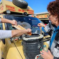 Die Vorbereitungen können beginnen, Entrosten ist Frauensache, unser Kfz- Mechaniker Team leistet im Hintergrund hervorragende Arbeit, die nicht aus geht.
