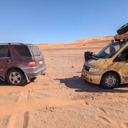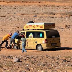 Nach Abenteuerlicher Anfahrt erreichten wir das Wüstencamp. WirMeer informatie