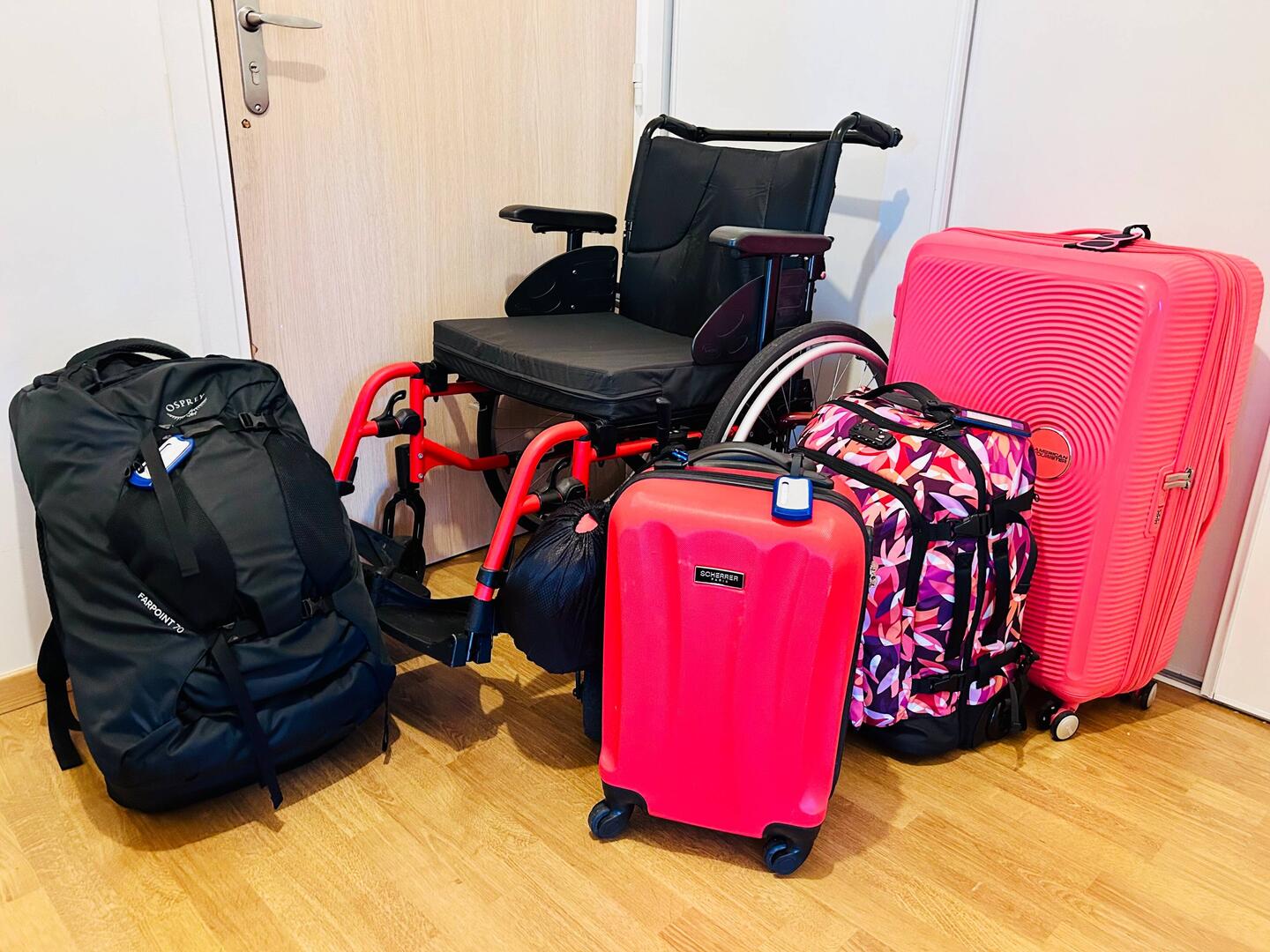 Aujourd’hui nous avons jouer à Tetris pour que l’intégralité des médocs, machines et autre joyeuseté rentrent dans la valise.