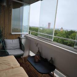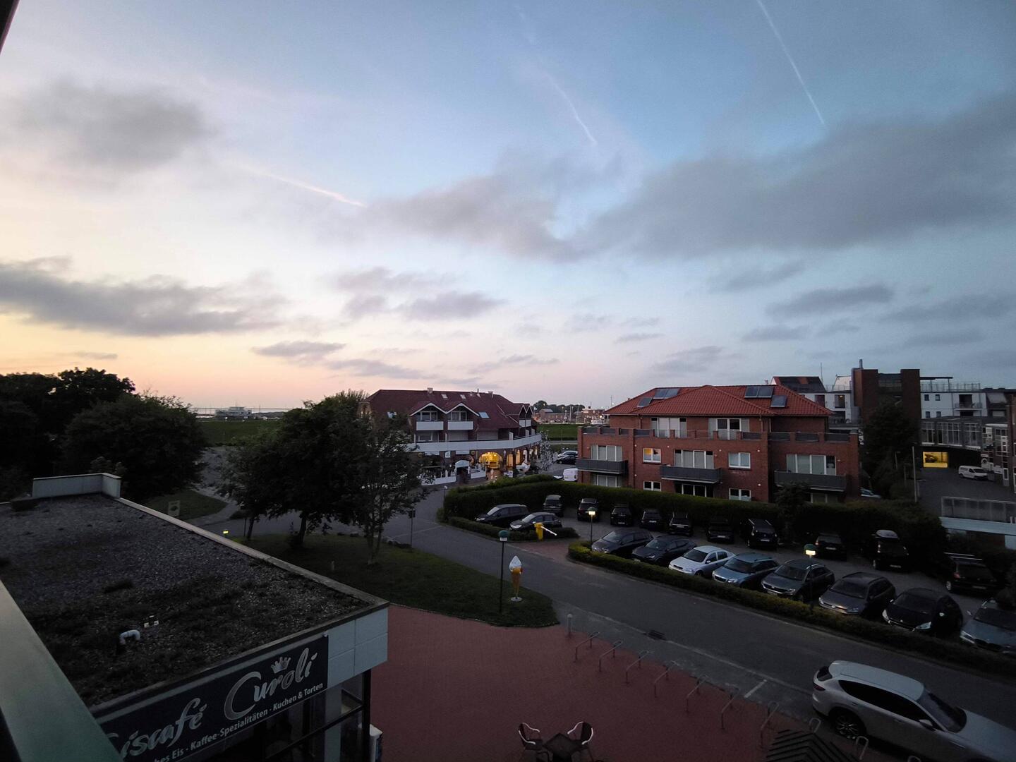 Blick vom Balkon, hinten links kann man aufs Meer blicken