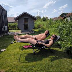 Gespannt fuhren wir zu unserer Unterkunft in Jade-Sehestedt, ein Tinyhouse (22qm) mit eigener Fasssauna und zum Glück auch Klimaanlage im Haus, denn draußen war es bereits seit Mittag schwülLæs mere