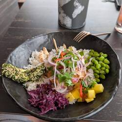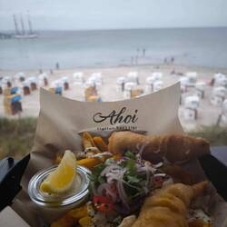 Nach unserem Checkout ging's weiter nach Sierksdorf. Zum Mittagessen machten wir Halt in Scharbeutz und aßen bei Hensslers "Ahoi" Fish & Chips und eine Bowl mit Garnelen.