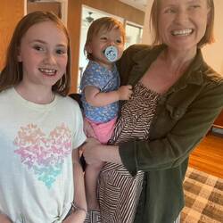 Harper, Grandma Pat & Tate. Getting ready to drive to Berkeley & onto Safari West.
