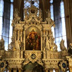 Beate erklimmt die Stufen zum Dom, während sich Sepp vom Schuhe-Shoppen erholt.