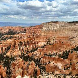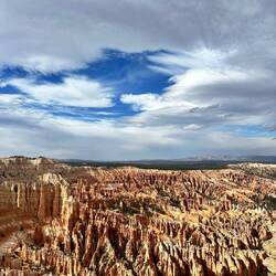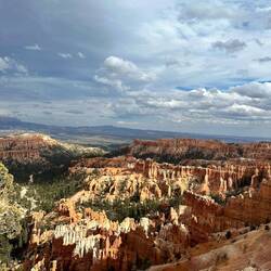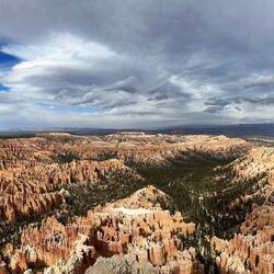 Perfekt haben sich die grauen Wolken als Kontrast zu den sonnenbeschienenen Strukturen des Bryce NP positioniert.