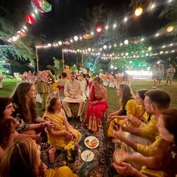 The ceremony was fantastic. After the bride and the groom made the grand entry we were all dancing together and even played some games. They had a host who was leading the “programme” and it was all very thought through. Then it was time for the ceremony with turmeric paste where all the guest took their turn to put a stroke of the paste on the couple. We also threw flowers in them and they on each other 😅🥰